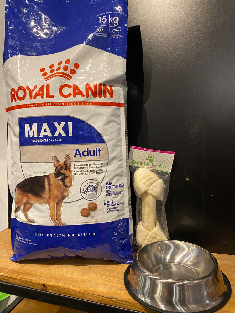 🐾 COMBO PREMIUM PARA PERROS GRANDES 🐾 Royal Canin Maxi Adult 15kg + Plato de metal + Hueso extra grande
