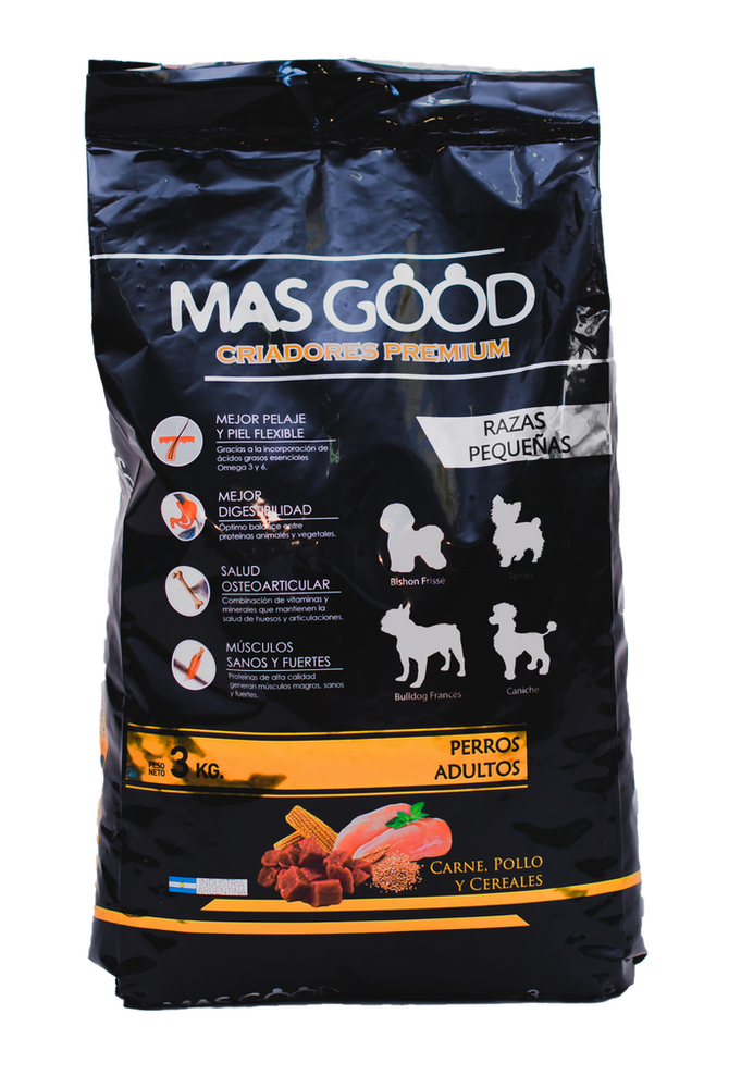 Alimento balanceado completo recomendado para perros adultos (+12 meses de edad) de razas pequeñas (+2 a 10 kg). El Antioxidante que utilizamos es una pared de levaduras con alta concentración en B glucanos y mananoligosacáridos, aluminosilicatos de sodio y calcio hidratado. Además de absorber micotoxinas, funciona cómo un prebiótico que colabora en el control de Salmonella y Escherichia Coli. Todos ingredientes de origen natural y certificados libres de dioxinas y metales pesados que no tienen efectos negativos en la salud y desempeño de nuestras mascotas.