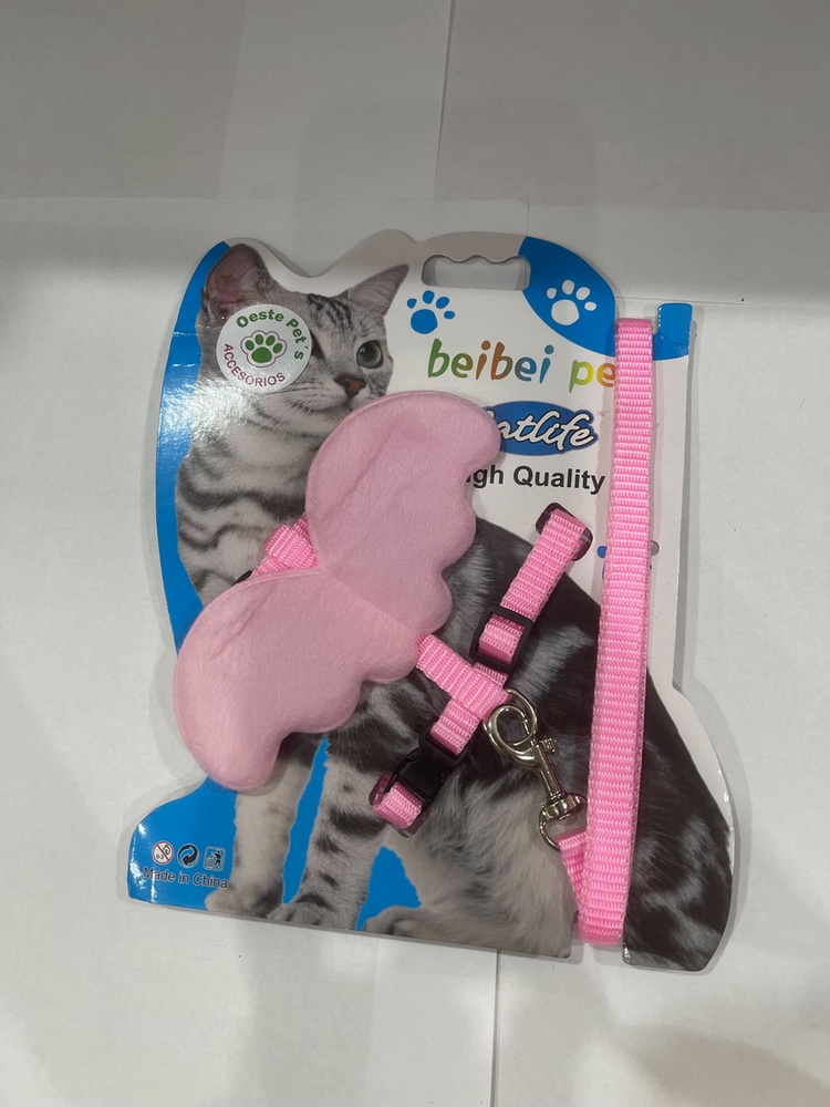 Arnés + Correa para Gato con Alas de Ángel ¡Dale a tu gato un look adorable y lleno de estilo con este arnés con alas de mariposa! Diseñado para combinar seguridad, comodidad y un toque de fantasía, este conjunto es perfecto para paseos seguros o sesiones de fotos irresistibles.