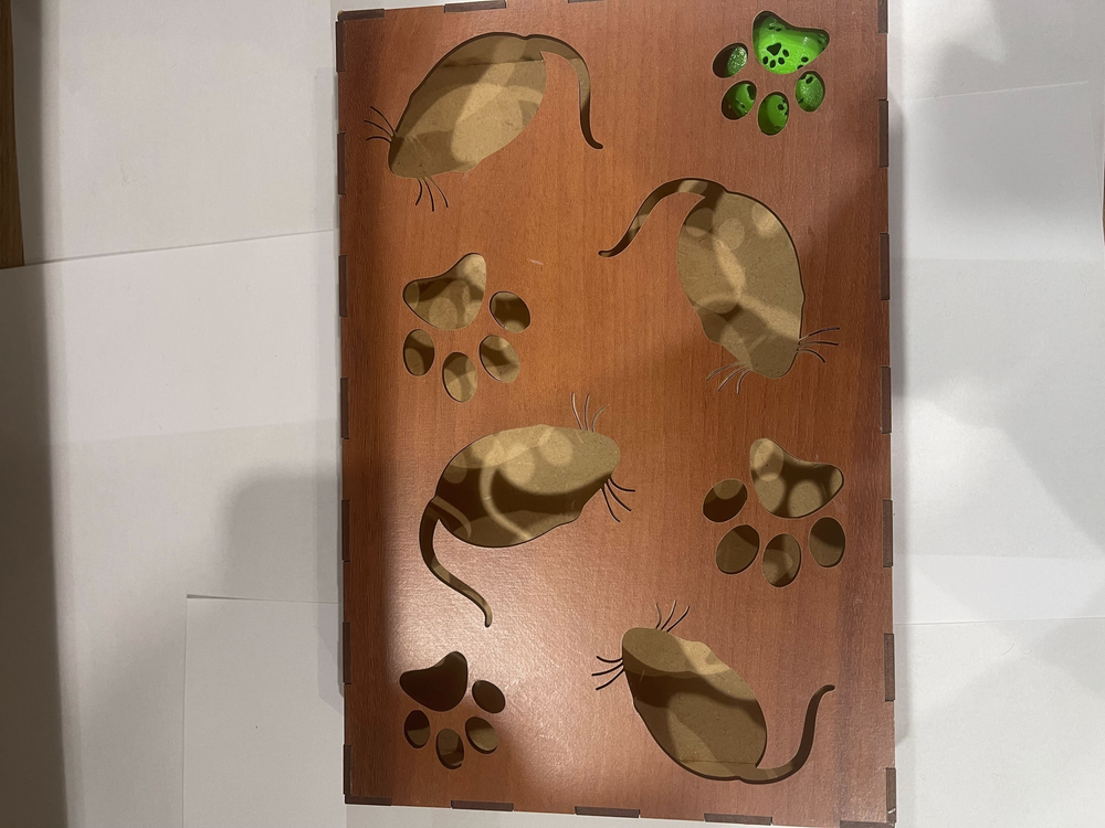Este juguete interactivo tipo caja de madera está diseñado para mantener a tu gato entretenido, activo y mentalmente estimulado. Con orificios estratégicos y espacio interno para esconder premios o juguetes, despierta el instinto de caza y exploración.